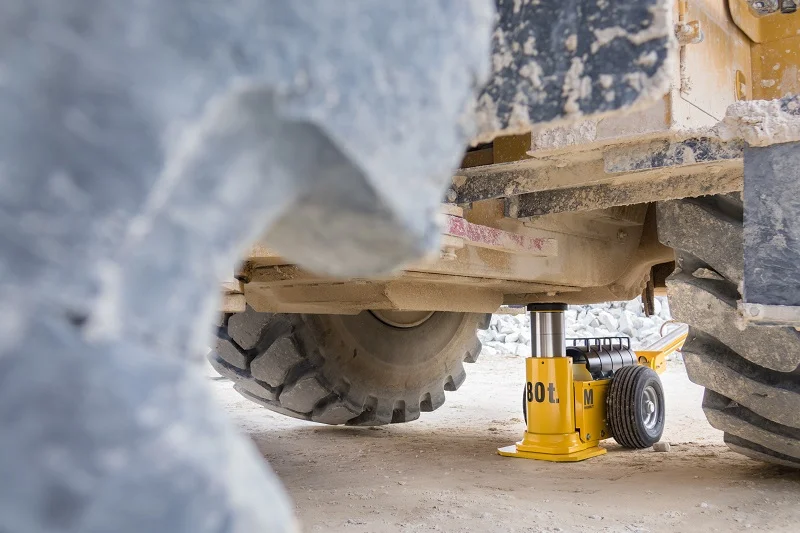 Air hydraulic Mammut jacks are engineered and manufactured to offer to all customers a solution that is safe and easy to use. They offer: - Light, compact, easy to handle; - The remote control allows for increased security during operation; - Folding handle; - A wide range of models and capacities from 60 t to 200 t; - Pneumatic tyres for easy operation on any surface.
